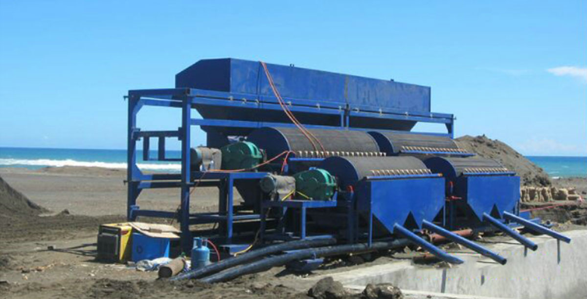 極低品位戈壁灘沙鐵礦磁選生產線是我公司自行研制的具有自主知識產權的從極低品位戈壁灘沙漠中提取鐵精粉的新產品,擁有發明專利兩項,實用新型專利兩項,該生產線采用先篩分后干選工藝,拋去大量尾礦,再經過預選大大提高原礦品位,使球磨機“吃粗糧”變為“吃精糧”,大大降低了運行成本,保證精選后最終鐵精粉品位達到64%以上,而且設備投資少,節能效果顯著。